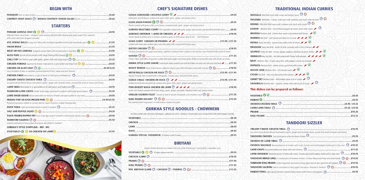 Welcome to Gurkha Kitchen, located at 129-133 S Western Rd, Salisbury. This culinary gem specializes in traditional Indian and Nepalese cuisine, offering a vibrant menu that transports you straight to the heart of the Himalayas. The star of the show is the selection of traditional curries, featuring options like Chicken Tikka Massala (£9.75) and the fragrant Lamb Pasanda (£9.50), each crafted with care and bursting with flavors.